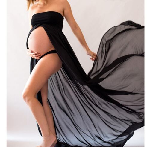 マタニティ ドレス ワンピース マタニティフォト チューブトップ シースルー シフォン 透け感 ロング丈 無地 ブラック ホワイト 黒 白 大人 着映え ゴージャス 豪華 セクシー 妊婦服 マタニティウェア