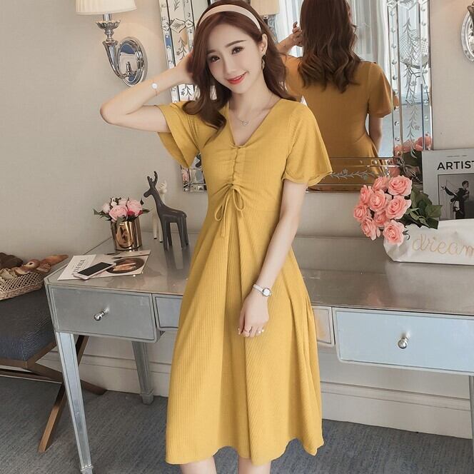 マタニティ ワンピース 半袖 夏 春 ロング丈 大きいサイズ イエロー ブラック フレア 無地 Vネック シンプル カジュアル 大人可愛い 妊婦服 マタニティウェア
